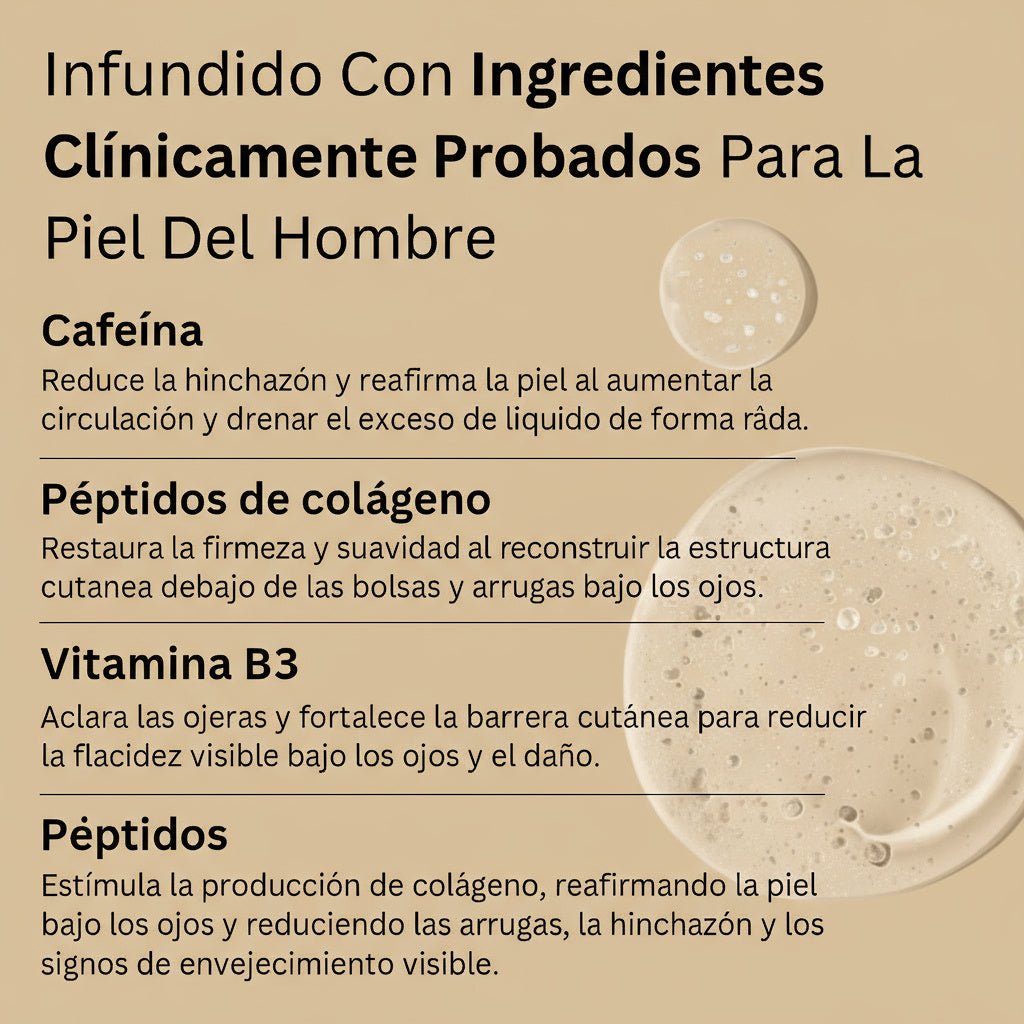 Usamos ingredientes con eficacia científica demostrada y respaldo clínico para combatir las bolsas en los ojos, independientemente de tu tipo de piel o tu edad. Tras 60 días usando el Eye Repair Stick, estos fueron los resultados que obtuvieron los hombres: